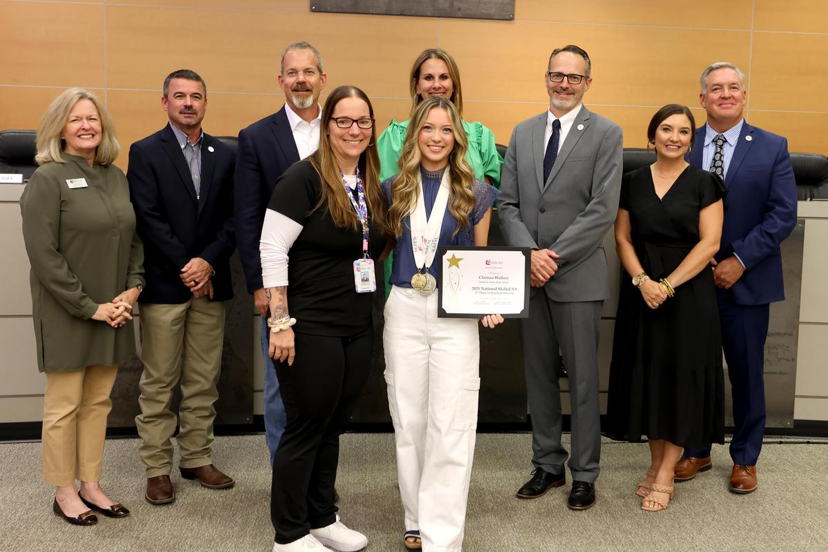 -Smithson Valley High School senior Clarissa Wallace was recognized by the Comal ISD Board of Trustees during its October 23 meeting for winning the silver medal at the National SkillsUSA competition.