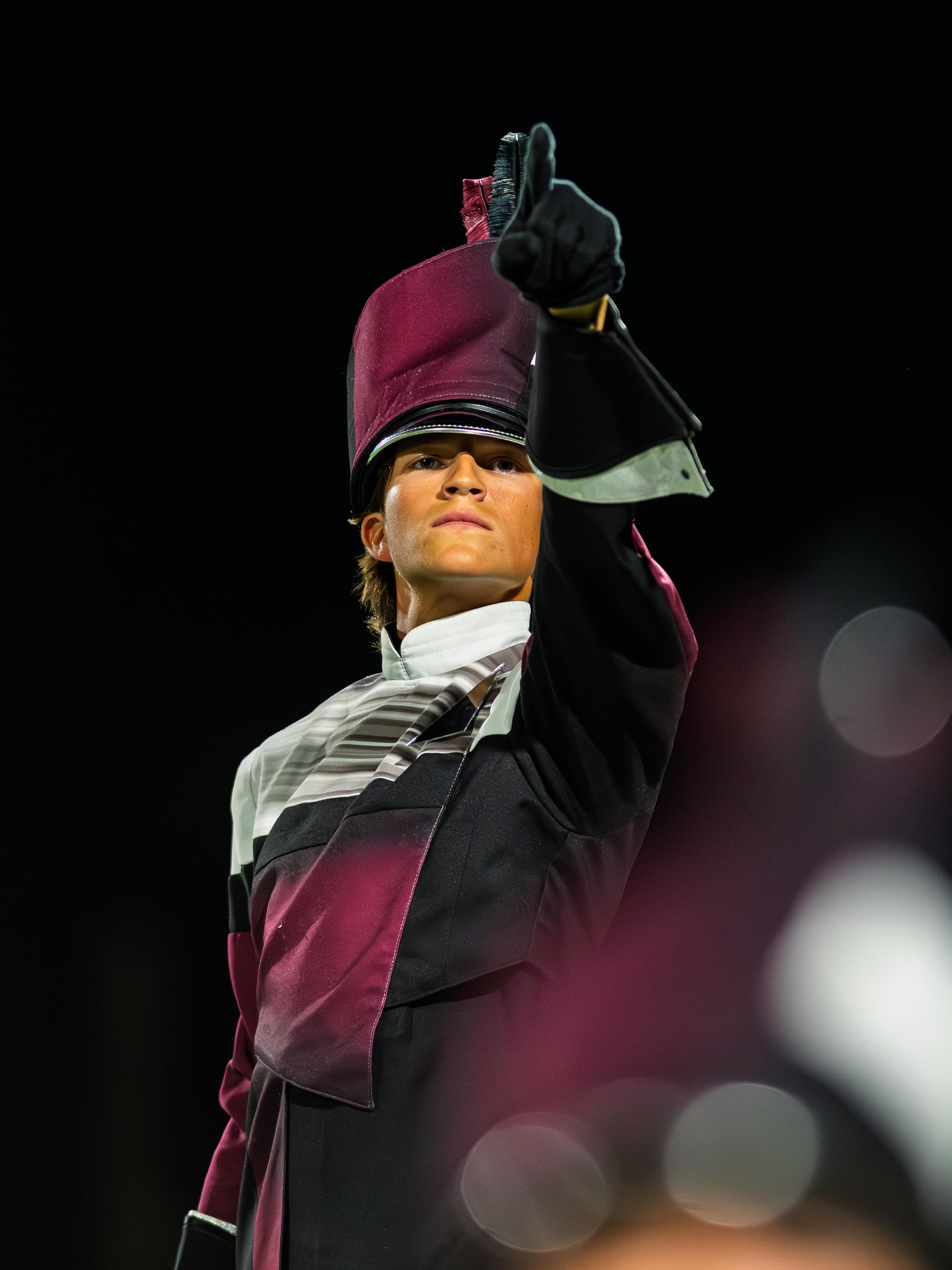 - Action photo of Davenport High School senior Caleb Atkins during a band performance.
